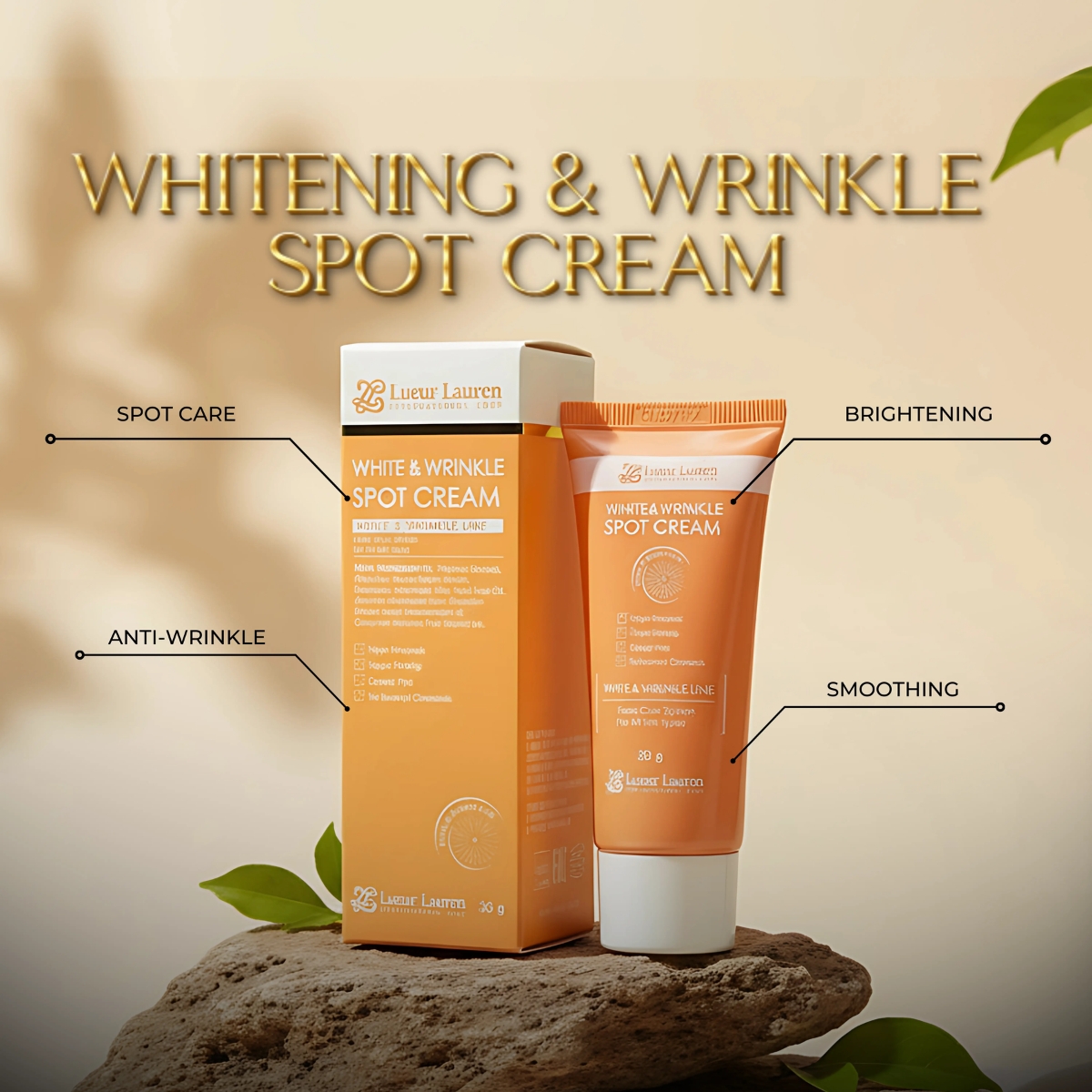 - Dab a small amount of the White & wrinkle spot cream on your forehead, nose bridge, chin and under your eyes.
